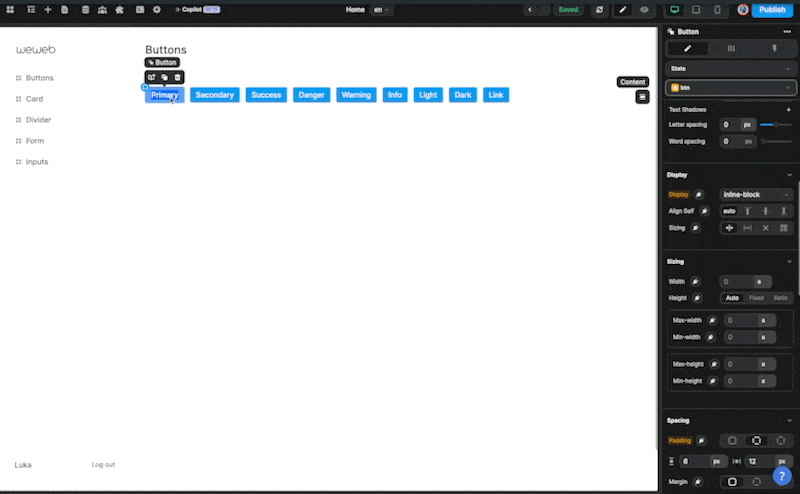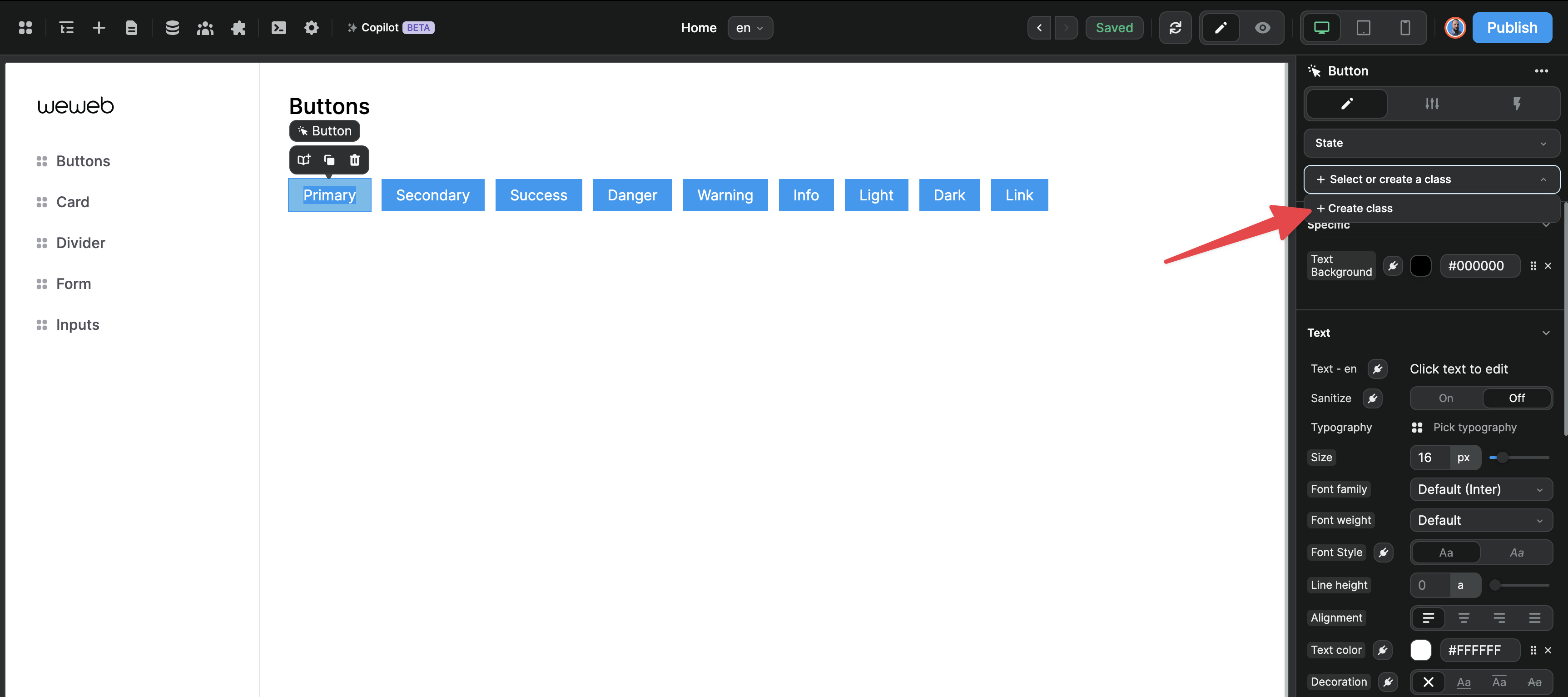 In WeWeb, if you wish to reuse a specific style, you can choose to create a class using the following option 👇 ​