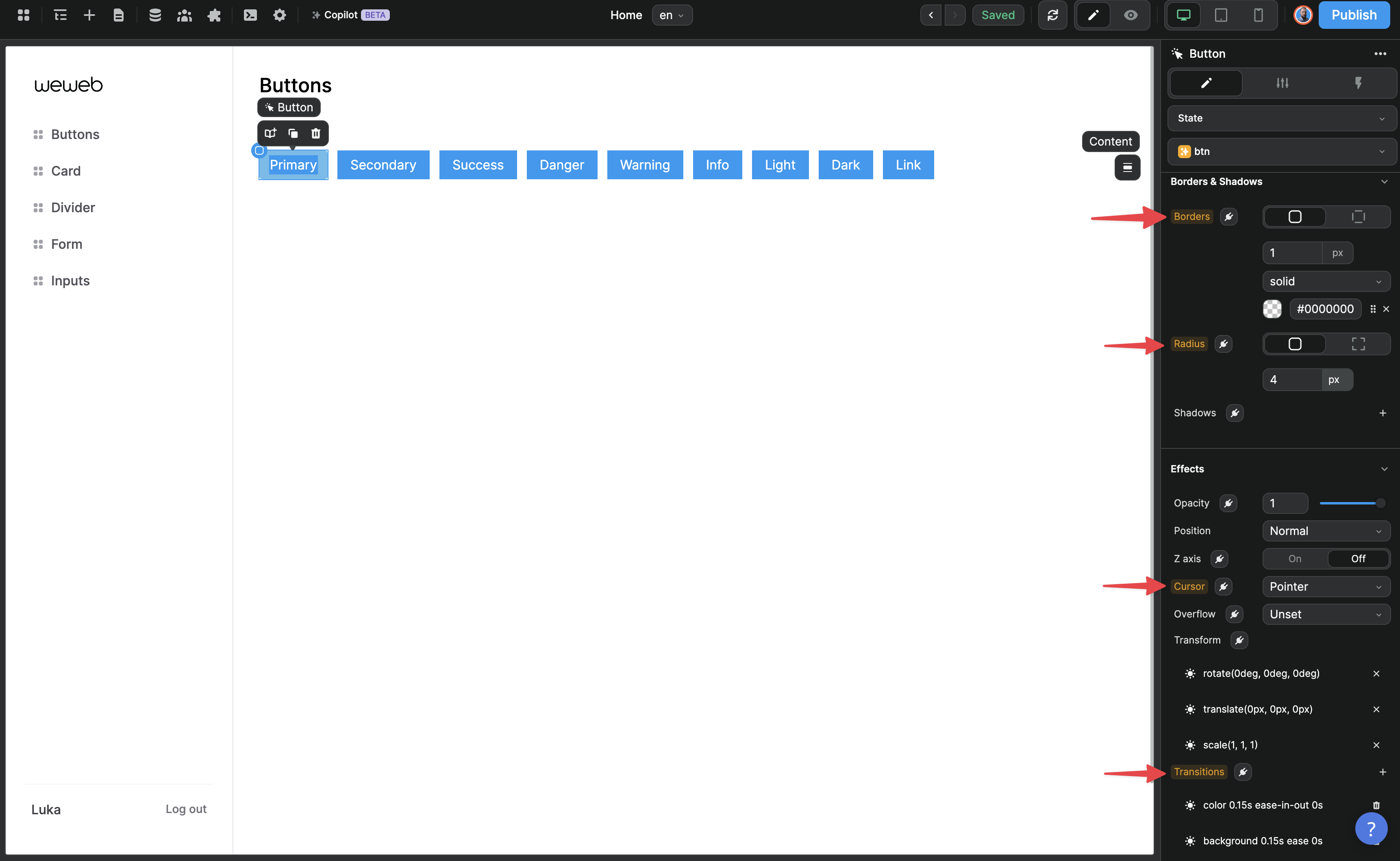 When saving our changes on the btn-primary class, we selected only those 3 properties to ensure it didn't potentially conflict with the style of our btn class: ​
