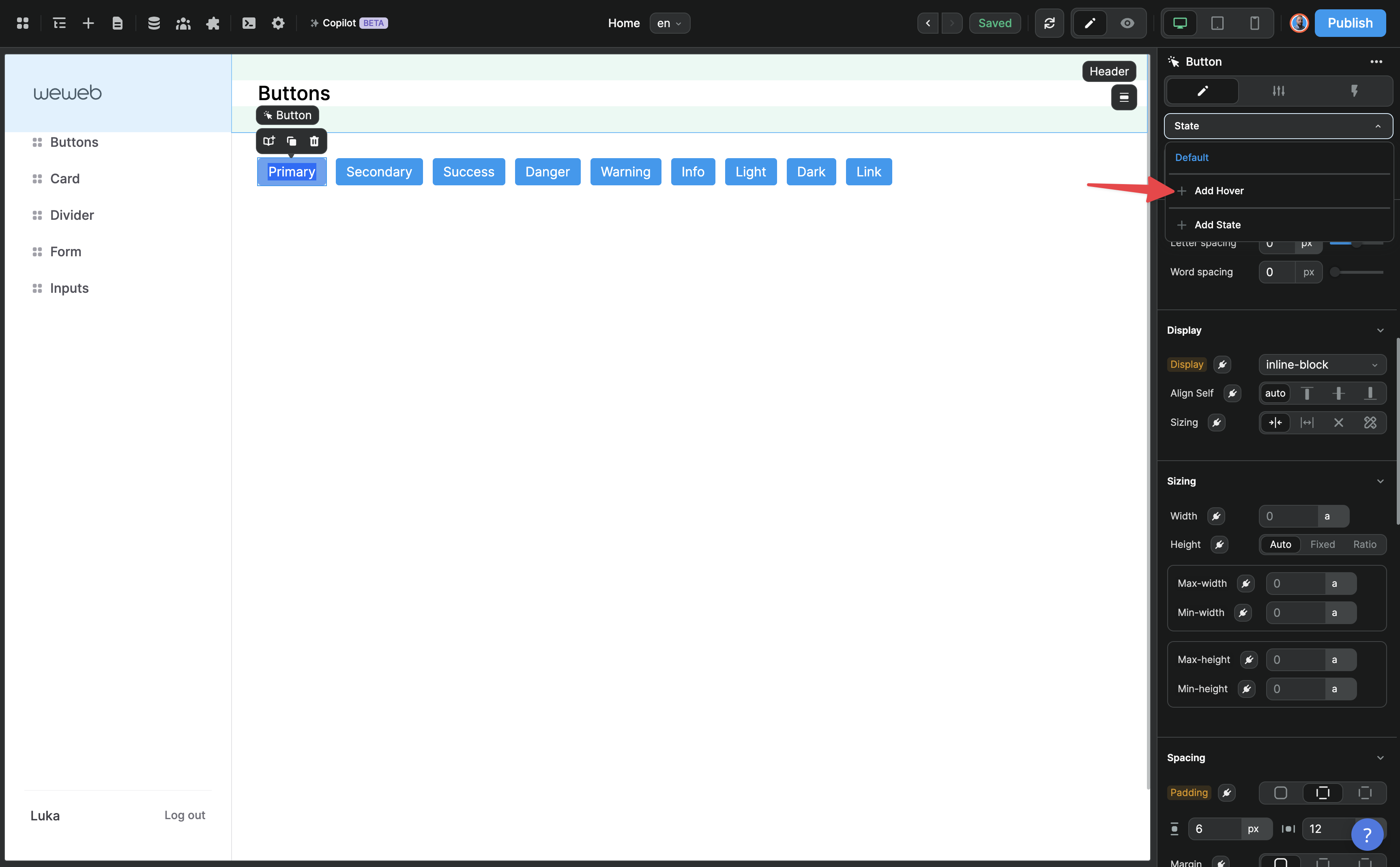 In order to do that, we can start by adding a state to our element (for example hover): ​