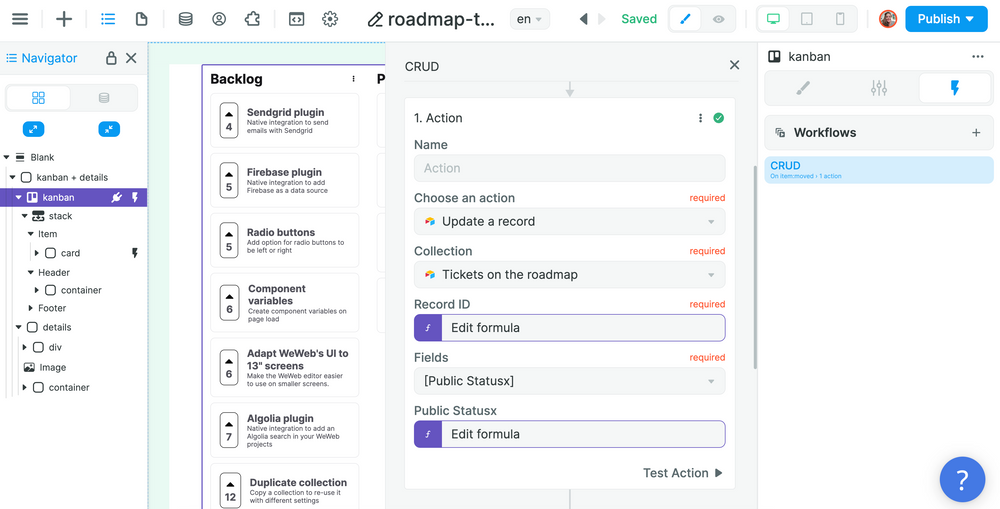In the example below, we are updating a record in Airtable, in the Collection we used to display items in the Kanban: