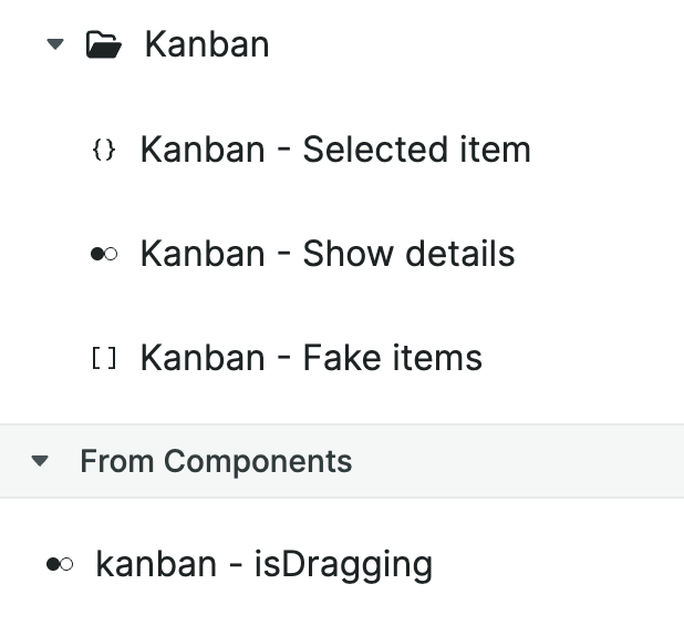 The "isDragging" Component Variable will be created regardless because it is required to drag-and-drop cards between columns.