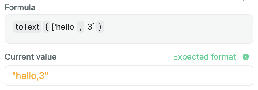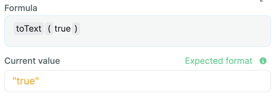 Given a number, a boolean or an array, this formula will return it as a text value.